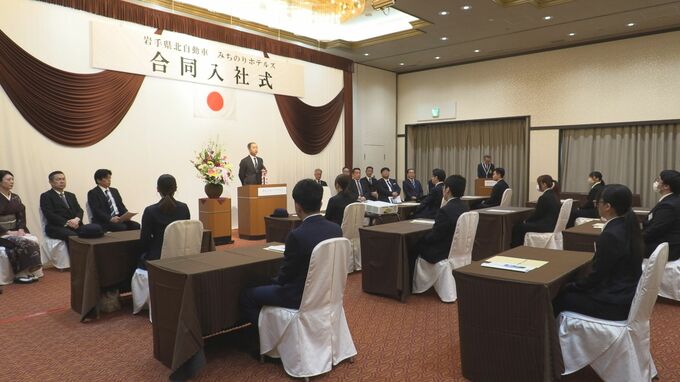 バス運転士を目指す1人のほか、宮古市と盛岡市の宿泊施設に配属される新入社員合わせて14人が緊張した面持ちで出席しました。