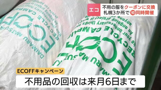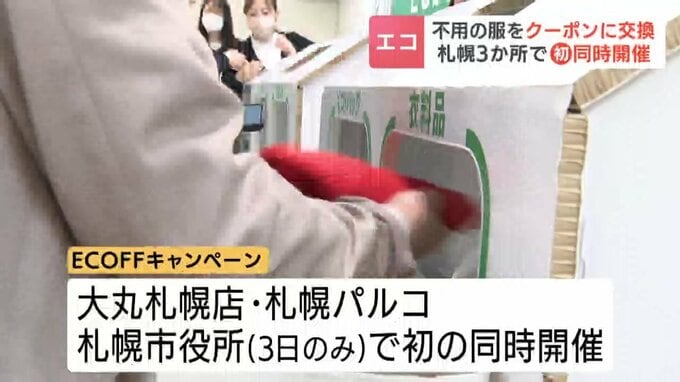 大丸札幌店で31日から始まった「ECOFF」(えこふ)キャンペーンは、使わなくなった洋服や靴などを店頭で回収し、タイやカンボジアの古着店で販売するほか、繊維素材などとしてリサイクルする取り組みです。