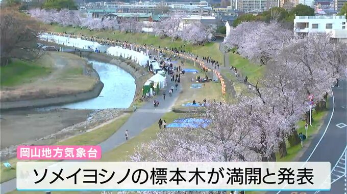 きょう(31日)、岡山地方気象台は岡山後楽園(岡山市北区)のソメイヨシノの標本木が満開になったと発表しました。