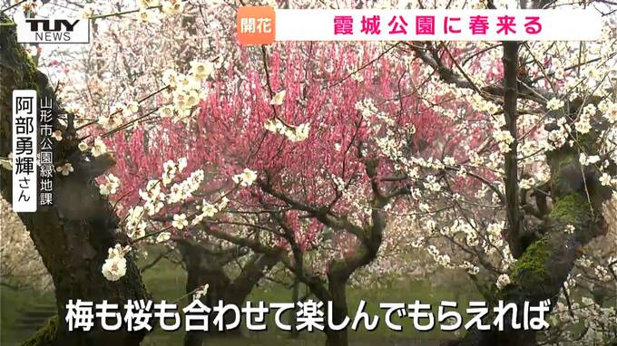 山形市まちづくり制作部公園緑地課 阿部勇輝さん「今年開花が早まったことで梅もまだ咲いている状況。梅も桜も合わせて楽しんでもらえれば」