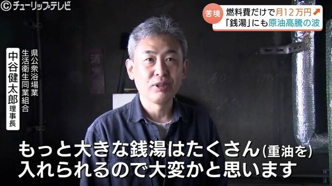 中谷健太郎理事長「うちの銭湯は割と小規模な銭湯なので、最低の消費だと思いますけれど、もっと大きな銭湯はたくさん(重油を)入れられるので大変かと思います」