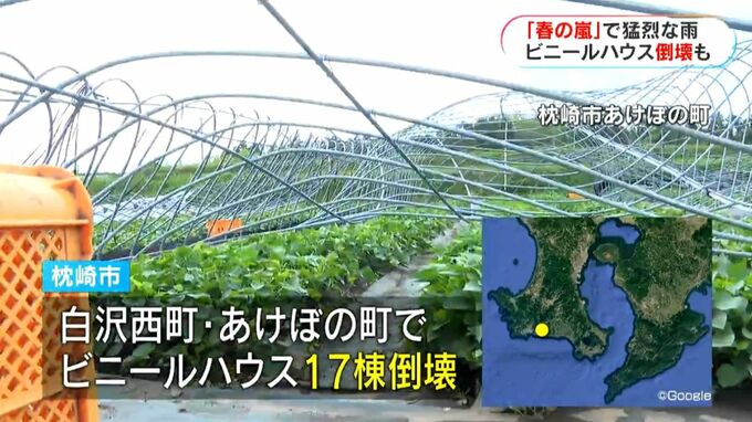 枕崎市によりますと、白沢西町とあけぼの町でサツマイモの苗などを育てていたビニールハウスあわせて17棟が倒壊しました。