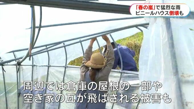 周辺では倉庫の屋根の一部や、空き家の瓦が飛ばされる被害も出ていて、気象庁は詳しい状況を調べています。