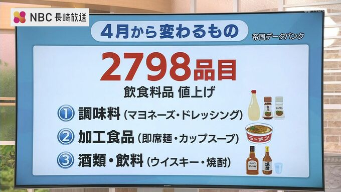 帝国データバンクによると、4月から2798品目の飲食料品が値上げされます。今年初となる大規模な値上げラッシュです。