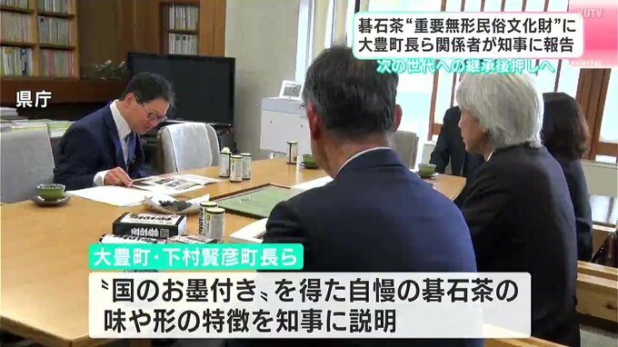 高知県大豊町の伝統茶=碁石茶(ごいしちゃ)が、「重要無形民俗文化財」に指定されたことを受け、関係者が濵田知事に報告を行いました。知事は次の世代への継承を後押ししたい考えを示しました。