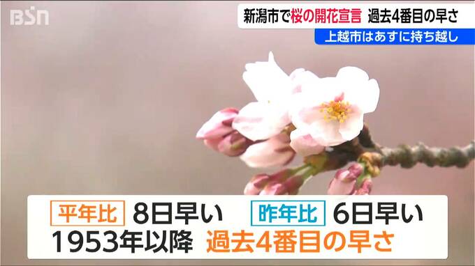 新潟地方気象台は31日、新潟市でソメイヨシノが開花したと発表しました。