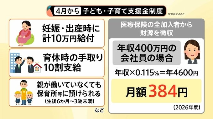 さらに子ども・子育て支援金制度により出産・子育てのケアも拡充されます。