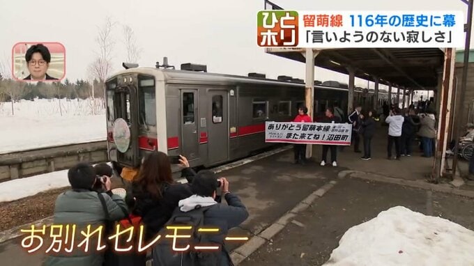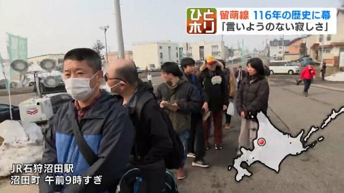 「いよいよきょうでラストランを迎えます。石狩沼田駅は午前中からにぎわいをみせています」
