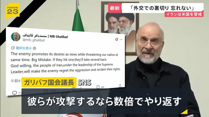 一方のイランのガリバフ国会議長は、トランプ氏をけん制しています。