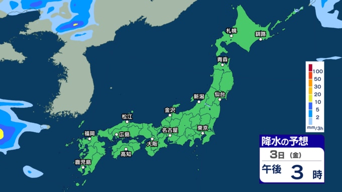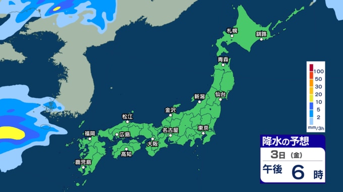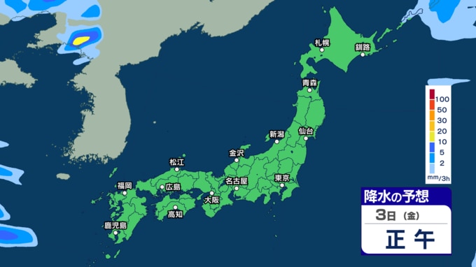あす2日にかけて雷伴い激しい雨のところも 3日(金)は“貴重な晴れ間”も4日(土)以降は再び激しい雨か【1日~6日午後3時の雨シミュレーション・1日正午更新】 新潟放送 2026年4月1日(水) 12:00 3日(金)の雨(降水)のシミュレーション