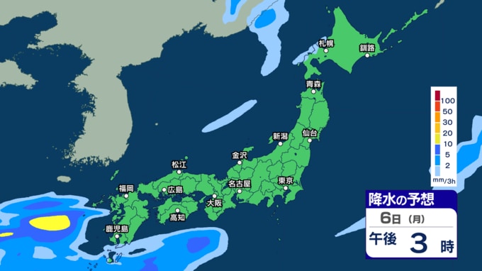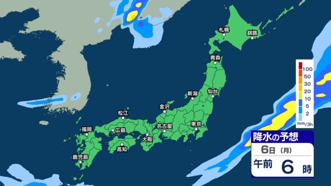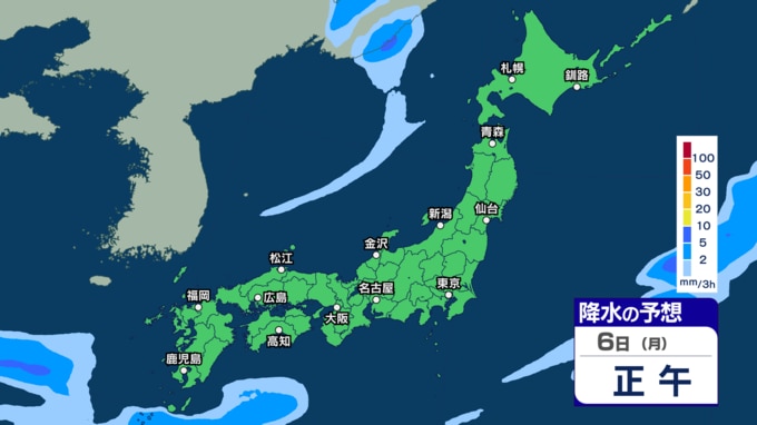 あす2日にかけて雷伴い激しい雨のところも 3日(金)は“貴重な晴れ間”も4日(土)以降は再び激しい雨か【1日~6日午後3時の雨シミュレーション・1日正午更新】 新潟放送 2026年4月1日(水) 12:00 6日(月)の雨(降水)のシミュレーション