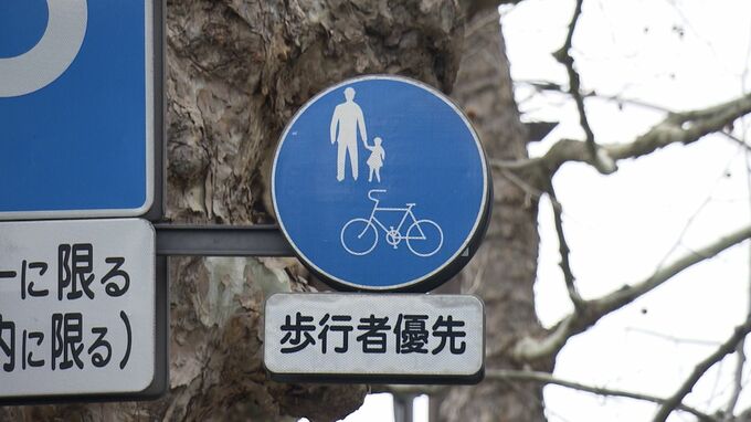 「歩行者と自転車の両方が描かれた標識。こうした標識がある歩道であれば自転車でも走行することができるんですが、そこにはさまざまなルールがあります」