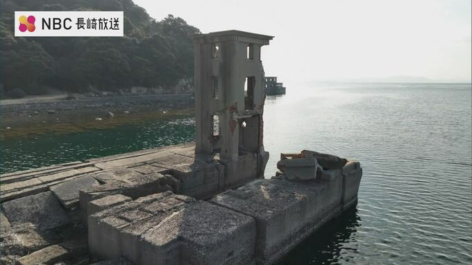 長崎県川棚町、大村湾に浮かぶコンクリート造りの人口の島があります。「魚雷発射試験場跡」です。上空からの映像では、緑がかった海へ向けて L 字型の桟橋と岸壁が伸びる様子が確認できます。
