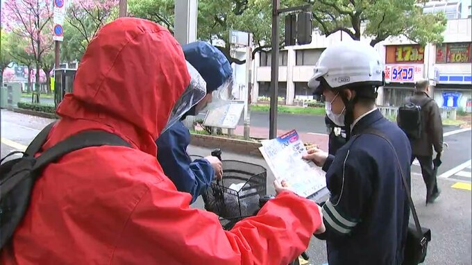 高松市の兵庫町商店街付近では、警察官8人によってチラシを配る啓発活動と交通指導取り締まりが行なわれました。