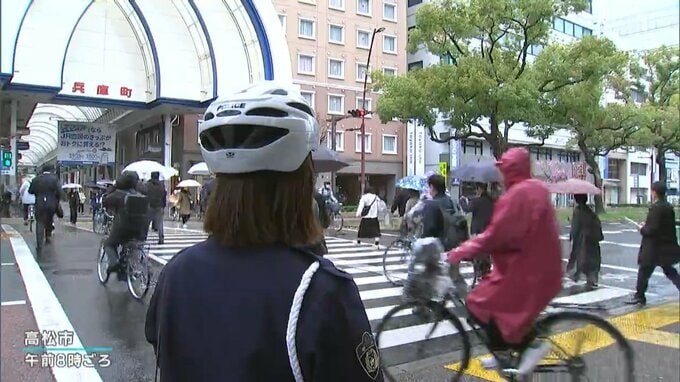 きょう(4月1日)から自転車の交通違反に対しても青切符が交付されることにあわせ、香川県警は県内一斉の街頭指導を行いました。
