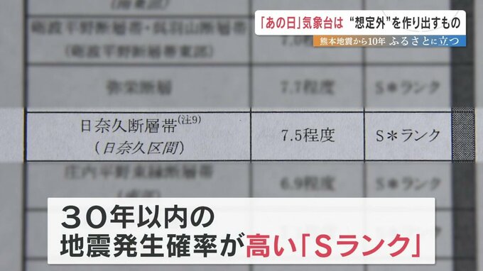 10年前に活動しなかった区間がまだ残っていることから、日奈久断層帯の日奈久区間と八代海区間について、国は30年以内の地震発生確率が高い「Sランク」に位置づけています。