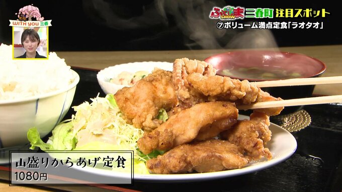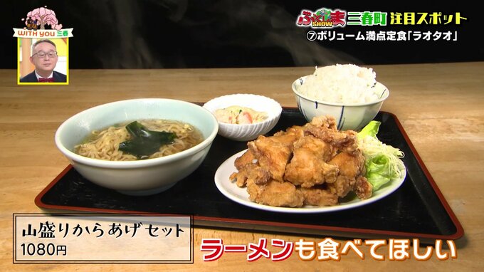 ここで驚きが待っています。「もっと食べたい!」という方のために用意されているのが「山盛り唐揚げセット」。なんとラーメンがついて、お値段は唐揚げ定食とまったく同じ1,080円。