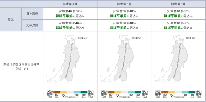 東北日本海側:ほぼ平年並の見込み 東北太平洋側:ほぼ平年並の見込み