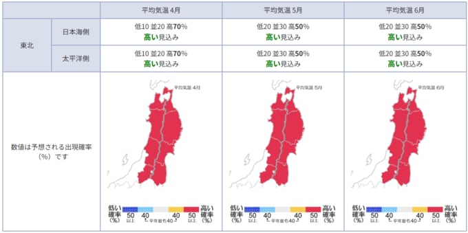 東北日本海側:高い見込み 東北太平洋側:高い見込み