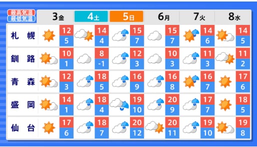 東北地方の向こう3か月(4月~6月)の天候の見通しは 平均気温・降水量は? 月別では? 今後の東北・全国の天気を画像で 気象庁 テレビユー山形 2026年4月1日(水) 11:34 国内 ■全国の天気を地方ごとに(画像) 画像はTBS NEWS DIG Powered by JNNより 画像ありの記事を最初から https://newsdig.tbs.co.jp/articles/-/2568930?display=1