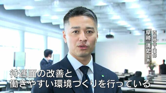 (西原商会人事部 早崎清史係長)「待遇面の改善と働きやすい環境づくりを行っている。新しいチャレンジに向かってどんどん取り組んでほしい」