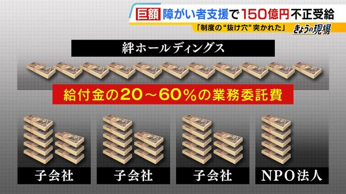 市によりますと、給付金はまずA型事業所を運営する3つの子会社とNPO法人に入ります。その給付金のうち20~60%が親会社である絆ホールディングスに対し「業務委託費」として支払われる契約になっていたといいます。