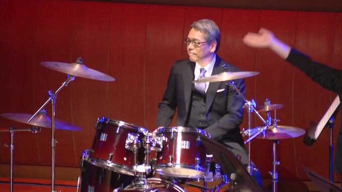 福岡銀行の入行式では、九州交響楽団の生演奏に合わせて五島久頭取がドラムを叩き、新入行員244人を歓迎しました。