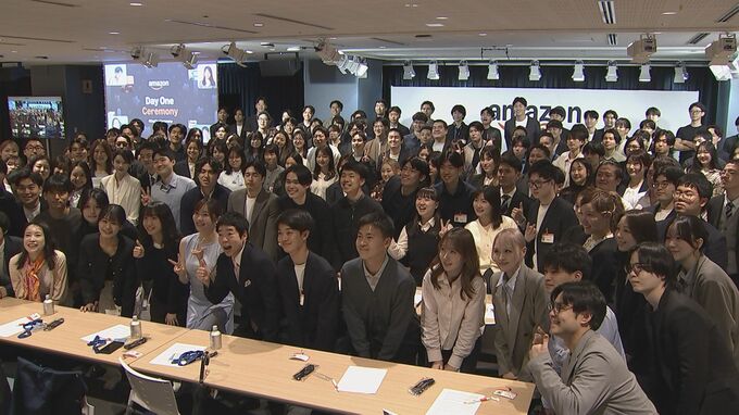 グローバルに展開するAmazonの入社式で、今田さんは〝Nice to meet you!〟と英語で挨拶。指原さんは〝日々、(アマゾンの)段ボールが家に届いております。色々なものを頼みまくって毎日お世話になっています〟と笑顔で挨拶しました。