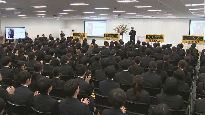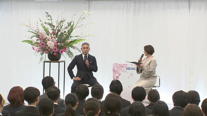 セイコーグループアンバサダーを務める團十郎さんは「入社式」に初めて登壇したそうで〝2026年4月1日エイプリルフール。皆の入社は本当なのかな?〟と、緊張している新入社員に冗談混じりに話しかけて和ませました。そして〝様々な挑戦を仲間と共に、新しい一歩を踏み出していただければと、応援しています〟と激励のメッセージ。