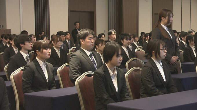 式では西郷孝一社長が働くうえで大切にしてほしい心構えとして「前向きであること、行動すること、学ぶこと」を挙げ新入社員を激励しました。