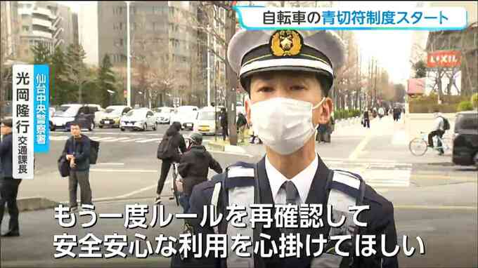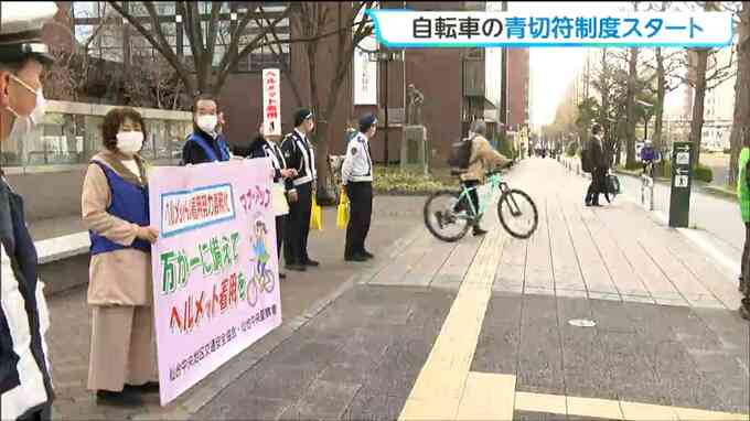自転車の交通違反に反則金を課すいわゆる「青切符」制度が4月1日から始まり、仙台市内で警察などが安全運転と交通ルールの遵守を呼びかけました。