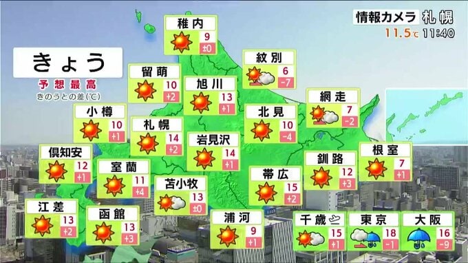 午後2時までの最高気温は、道内で最も高い胆振地方のむかわ町穂別で16.2度と、今年の道内の最高気温を更新しています。また、札幌の1日の入りは午後6時ちょうどで、きょうから午後6時台になります。日の長さを実感できそうです。