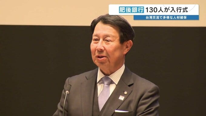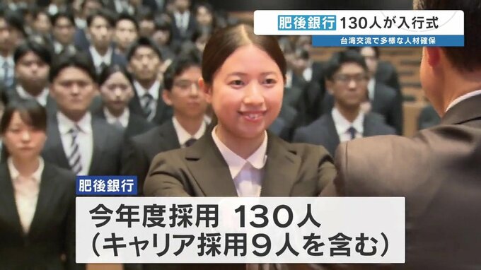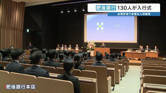 肥後銀行では、今年度採用された130人が、引き締まった表情で入行式にのぞみました。