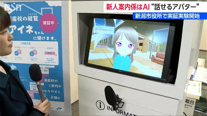 新年度の4月1日、新潟市役所の窓口にはAIの“話せるアバター”が新人案内係としてデビューしました。その新人は新潟市役所のふるまち庁舎、資産税課に入って、すぐのところで待っています。【記者リポート】「例え…