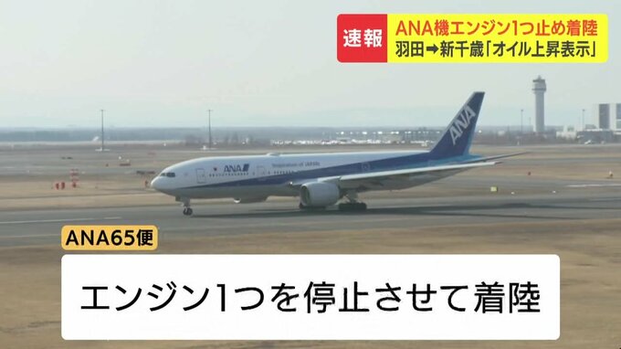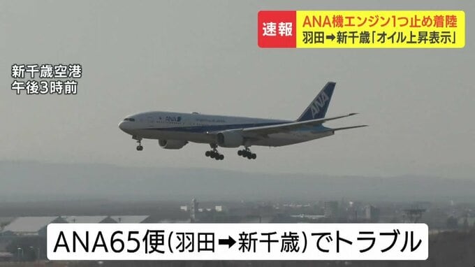 1日午後、新千歳空港で羽田発の全日空機にトラブルがありエンジン1つを止めて着陸しました。