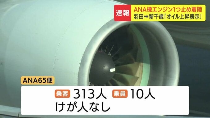 全日空65便には、乗客313人、乗員10人が乗っていましたが、けが人などの情報はありません。