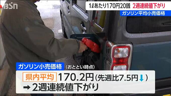 石油情報センターによりますと、3月30日時点の県内のレギュラーガソリン平均小売価格は1ℓあたり170円20銭で、前の週より7円50銭安くなりました。