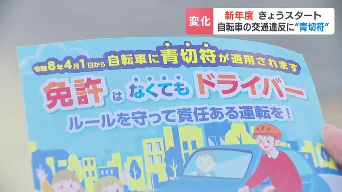 「自転車の利用者に向けて、『青切符』について書かれたビラが配られています」