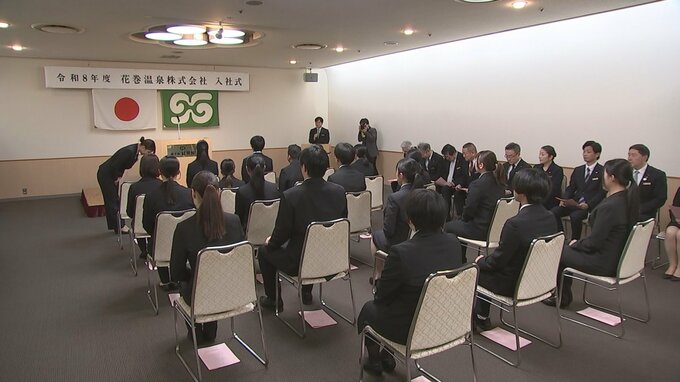 まもなく創業100年となる岩手県花巻市の温泉施設運営会社でも入社式です。