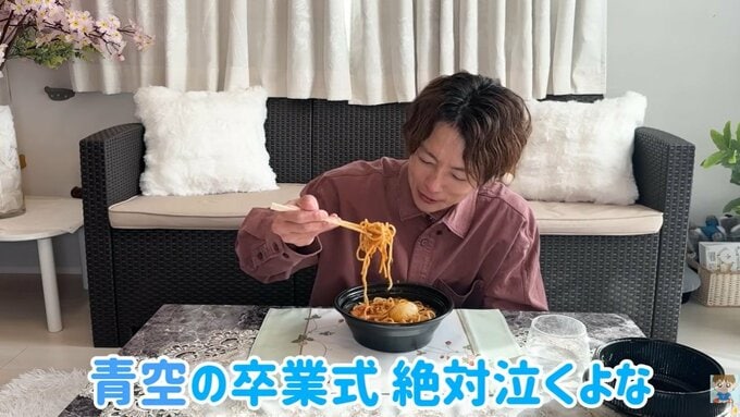 杉浦さんは「親としての使命を全うして 青空も受験生としての使命を全うしました!」「卒業式もね 撮影してるときは卒業式まだやけど」「涙 涙の卒業式も 待ってるやろうから」「青空の卒業式 絶対泣くよな」と、もうすでに涙あふれそうになっているのを激辛麺の涙目でごまかしているようにも見える、喜びの表情を見せていました。