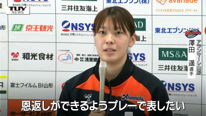 アランマーレ山形 澤田遥 選手「自分らしいバレーボールをして応援して下さる方々への期待に応える事や今までお世話になった方々への恩返しができるようプレーで表したい」