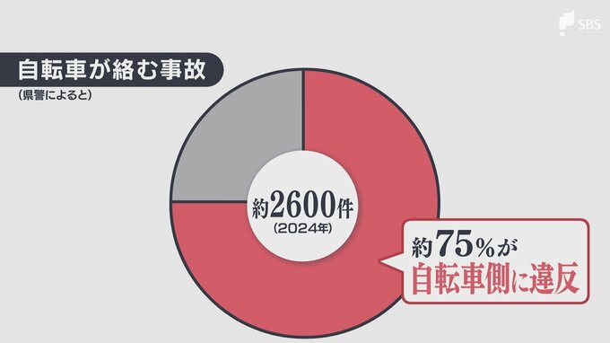 静岡県内で発生した自転車事故約2600件(2024年)のうち、約75%で自転車側に違反があり、警察が対策に力を入れています。