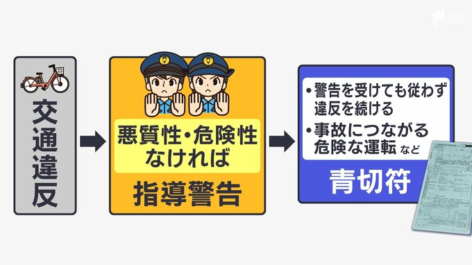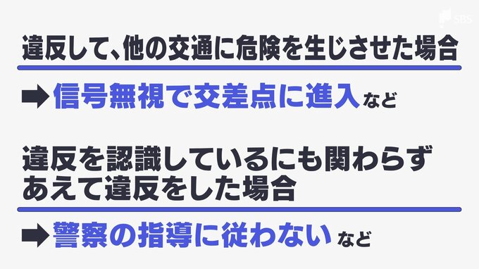 また、実際に交通への危険を生じさせる違反、例えば信号無視など、警察から違反を指導されたにもかかわらず、従わない場合も青切符の対象になるということです。