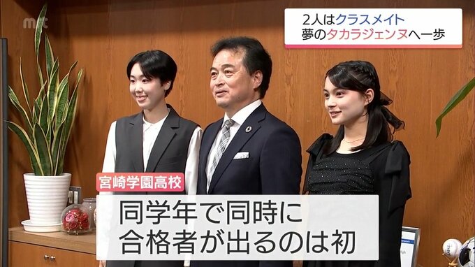 宮崎市の宮崎学園高校をこの春卒業した坂本彩さんと黒岩真衣さん。2人は、未来の「タカラジェンヌ」を育てる「宝塚音楽学校」を受験し、見事、合格を果たしました。