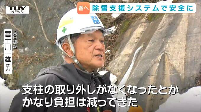 太田建設 冨士川一雄 主査「費用の面でも(目印となる)スノーポールの軽減とか支柱の取り外しがなくなったとかかなり負担は減ってきた。やはり自分の位置がわかるのは非常に安心して雪を押せる」