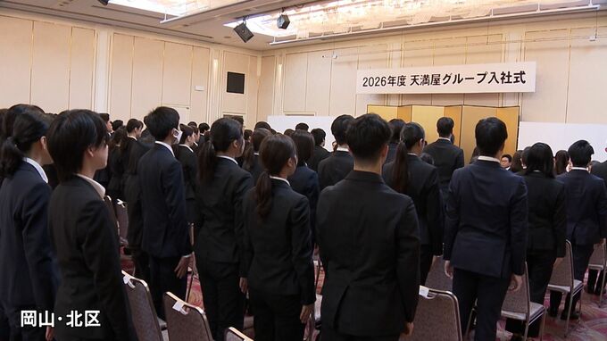 また、岡山市の紳士服大手「はるやま商事」には64人が入社しました。
