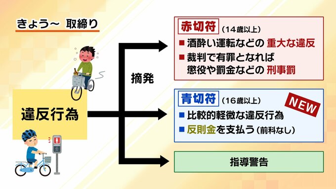 4月1日から導入された自転車の違反運転に対する「青切符」。従来の「赤切符」に加え、“比較的軽微な違反行為”についても反則金が科されるようになります。