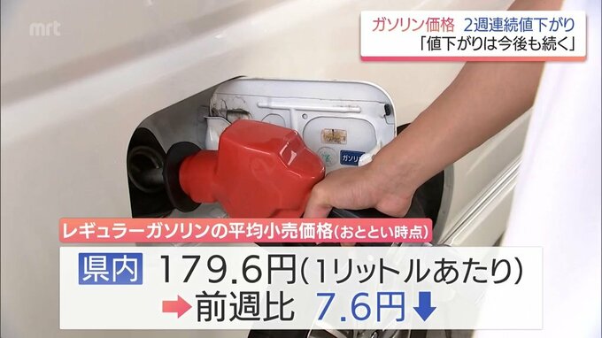宮崎県内のレギュラーガソリンの平均小売り価格は、1リットルあたり179.6円と2週連続で値下がりました。石油情報センターによりますと、県内のおととい時点のレギュラーガソリンの平均小売り価格は、1リットルあた…