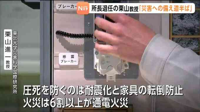 「圧死を防ぐのは耐震化と家具の転倒防止、火災は6割以上が通電火災、電気なので、『感震ブレーカー』。揺れが起きたらブレーカーが落ちるもの、津波や洪水なら遠くに逃げるという行動」