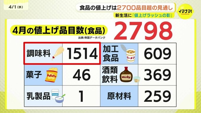 「マヨネーズやドレッシングなどの調味料ですとか即席麺といった加工食品が値上げが中心になっている」